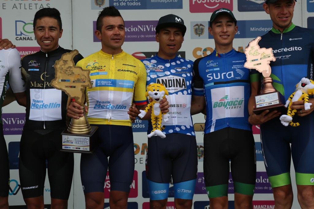 “Agradecido con Dios por darme esta oportunidad y a toda Colombia que nos acogió de gran manera en esta Vuelta”, comentó el “Rey de la Montaña” 2022 en la tarima de premiación junto a los otros campeones.